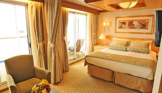 ·设施:位于甲板中段;落地式滑动玻璃门,客舱内有两张单人床,可转换成一张大号床,衣柜的空间大,带淋浴的私人浴室,有抽屉的办公桌。每个客舱有专属的电视,恒温控制空调,冰箱,个人保险箱,24小...