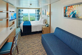 本房型提供两张单人床(可拼成大号双人床),海景窗,起居区配桌子和沙发,吹风机与梳妆区的私人卫生间及电视、电话。
