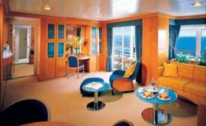 船头,两张单人床可以转换成一张双人大床,带淋浴和浴缸的卫生间,五倍放大化妆镜,更大的衣橱空间,两个洗手池、全套洗浴用品、位于私人阳台的按摩浴池、西利牌欧洲高级床垫、100%高级埃及棉的浴袍、毛巾和床上用品、平板电视、恒温空调、DVD播放机,少数配有沙发床以容纳更多人。