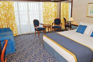 位于甲板中前、中后段;套房落地式滑动玻璃门,客舱内有两张单人床,可转换成一张大号床,衣柜的空间大,带淋浴的私人浴室,有抽屉的办公桌。每个客舱有专属的电视,恒温控制空调,冰箱,个人保险箱,24小时客房服务。 一些客舱都配备了额外的床上用品,以适应第三或第四位客人。