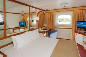 ·设施:位于甲板中前段;两张单人床,可转换成一张床,衣柜的空间大,带淋浴的私人浴室,有抽屉的办公桌。每个客舱有专属的电视,恒温控制空调,冰箱,个人保险箱,24小时客房服务。 一些客舱都配备...