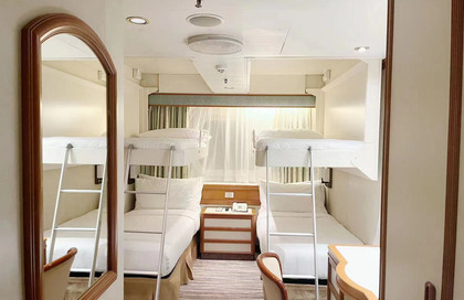 ·设施:位于甲板中段;客舱内有两张单人床,可转换成一张大号床,衣柜的空间大,带淋浴的私人浴室,有抽屉的办公桌。每个客舱有专属的电视,恒温控制空调,冰箱,个人保险箱,24小时客房服务。 一些...