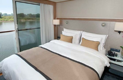 阳台套房配有酒店式样的床,开阔的走廊环绕在起居室周围。从天花板到地板的落地窗让您在房间就能享受绝佳的观景体验。私人浴室配有淋浴器和高档的洗浴用品。每间舱房都配有电话,冰箱,保险箱,吹风机,瓶装水,独立温控系统,床下存放行李箱的储存空间,带有木制衣架的大衣橱,和存有海量娱乐节目的26寸索尼平板电视。浴袍和拖鞋任您使用。
