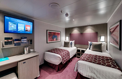 ·设施:双人床(单人床可转换为大床,或双人床),皮革床头板,床头柜和壁灯,枕头菜单,平板高清电视(互动电视系统,可以预订,还有行程/港口呼叫和旅游/游览信息,电影点播,现场摄像头),直拨电...