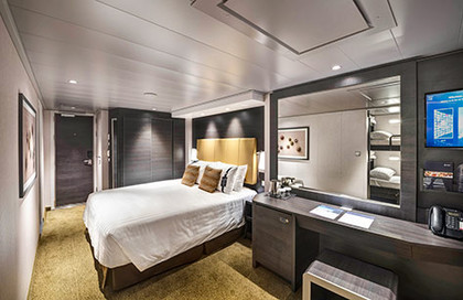 ·设施:结合2间阳台房,2个液晶电视,2个电话,2个电子保险柜(壁橱),2个迷你酒吧,2衣柜,2个私人浴室(1个淋浴,1个淋浴/浴缸),2个私人阳台,睡6人(双层床与沙发床的组合)。