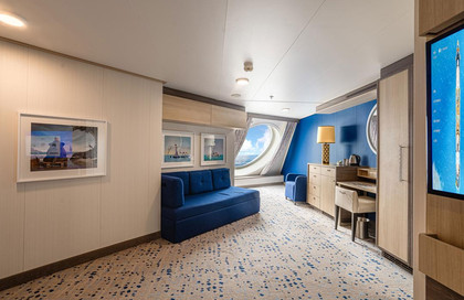 ·设施:带全景窗;房间配有:两张单人床(可合并成大床)/折叠沙发床(展开后相当于大床,可住两人)/带有沙发的休息区/带淋浴的独立卫生间/梳妆台与吹风机/液晶电视/冰箱/保险箱/电热水壶/毛...