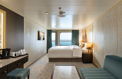 ·设施:配备独立阳台与沙滩椅,每间客舱可容纳2~4名乘客,配有1张双人大床(可拆分成两张单人床)的独立卧室,部分房间配备1~2张伸拉式折叠床;独立卫生间,浴缸,梳妆台,吹风机;配备有液晶电...