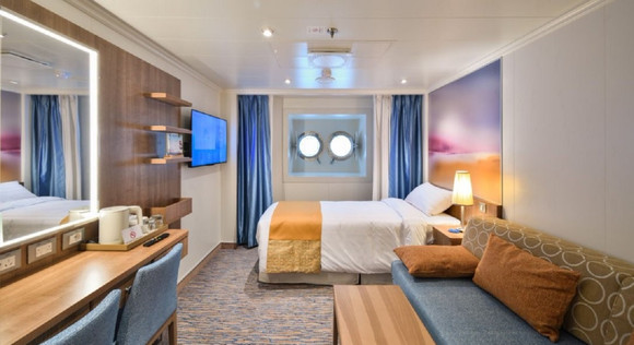 ·设施:位于邮轮外侧的房型,可以通过窗户欣赏到大海的美丽景色,让您在舒适的空间内放松身心。房间中设有舒适的床品,让您享受完美的睡眠体验。