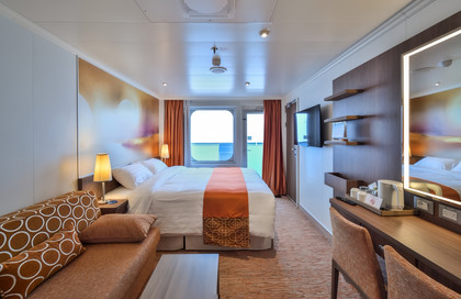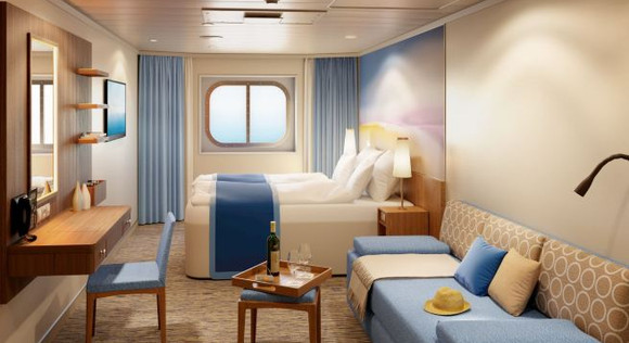 ·设施:位于邮轮外侧的房型,精巧设计的观景舷窗,可尽享美妙海景,让您在舒适的空间内放松身心。房间中设有舒适的床品,让您享受优质的睡眠体验。房间内可以选择两张单人床或合并为一张双人床,另有一...