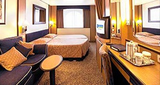 所有舱房和套房都配有私人浴室、梳妆区、吹风机、电视机、收音机和电话。两张单人床,可转换成一张大床,私人浴室
