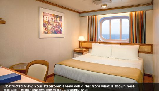 ·设施:位于甲板中段;一张大床或2张单人床,100%埃及棉床单。方窗,部分房间配有沙发床(以供第三四位客人入住),独立浴室(独立淋浴设备,洗发水、护发素、润肤露、吹风机),衣柜,迷你保险箱...