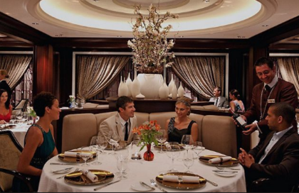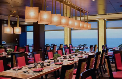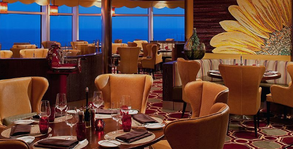 这是一家传统的牛排馆,在这里您可以品尝到结合了地中海和加州纳帕的美食风味。 开放时间:只有晚餐18:00-22:00。可能因航线不同而变化,请在船上核实确认时间。 着装:正式服装,男女西服,领带,燕尾服及晚礼服。 费用:每人35美元的象征性收费,不含饮料和葡萄酒,若有需要,则按照菜单上价格收费。 预约:需要预约。位于5楼船尾。