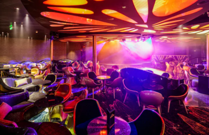 葡萄酒和香槟酒吧采用优雅的帷幔,凉爽的大理石和抛光木材,配有雕刻灯具,让人想起香槟酒杯和背光玻璃“气泡”。 看看闪闪发光的墙壁:你可以看到着名的粉红色大象来自深受喜爱的迪士尼电影Dumbo跳舞,你可以在晚上享用香槟、吐司!