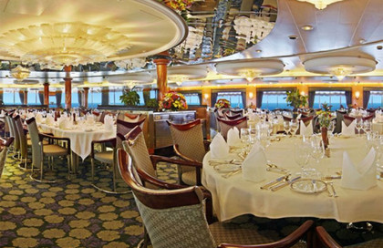 这里有特色牛肉和新鲜的海鲜,有标准纯银优质牛肉,菲力牛排和大虾,烤龙虾尾,凯撒沙拉和龙虾浓汤,巧克力和葡萄面包,黄油布丁和其他美味的甜点,美味而又独特,豪华的用餐环境,提升顾客的用餐体验。 提供午餐和晚餐,午餐:10美元;晚餐:25美元(12岁以下的儿童免费,青少年享受五折优惠)。