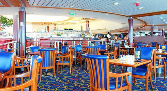 全船美食饕餮汇聚,融汇西餐,中式点心。全船24小时提供食物,从早到晚吃不停。
