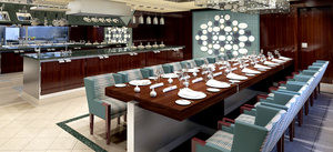 厨师的表每次在不同的地方提供各种开胃菜、主菜和甜点。