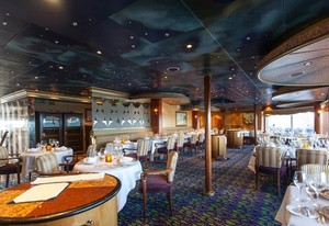 晚餐俱乐部,餐厅取Georges Pierre Seurat风格,这是通过数以千计的颜色点的图像渲染而来。有葡萄酒、牛排、羊排和龙虾等特色美食,同时还有现场钢琴演奏和唱歌表演。