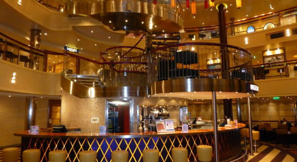 大堂酒吧位于微风号中庭的底部,设有舞池和钢琴表演。
