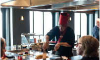 飞虾、洋葱火山、旋转刀。在我们真正的日本Hikabi餐厅,咝咝声和惊喜从未停止。坐在一个生动的共享桌,一个熟练的厨师切片,排骨和烧烤牛排,海鲜和鸡肉,在你眼前呈现美食。
