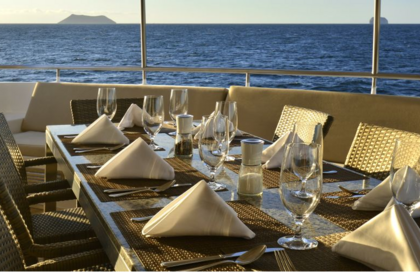 餐厅为早餐、午餐和晚餐提供充分的自助餐。所有的膳食来源于新鲜的当地成分,并使用高质量的可持续海产品。