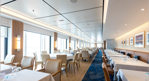 这艘邮轮的这艘邮轮的主餐厅,提供完整的一日三餐,餐厅内空间宽敞,菜肴多样!