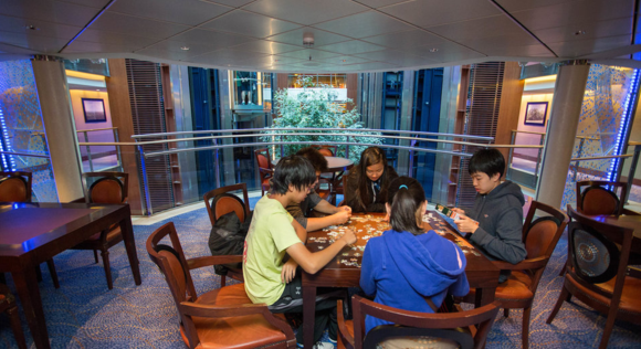 邮轮提供棋牌娱乐服务,您可以约上好友来一场雀神比试。