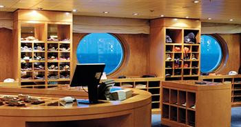 免税购物区,琳琅满目的商品,邮轮上会有定期的折扣日。