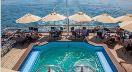 在温暖的气候探险中,船上的户外生活围绕位于船尾的Pool Deck。人们在泳池酒吧和小而清新的游泳池周围进行社交和休息,非常适合在热带地区享受清凉。