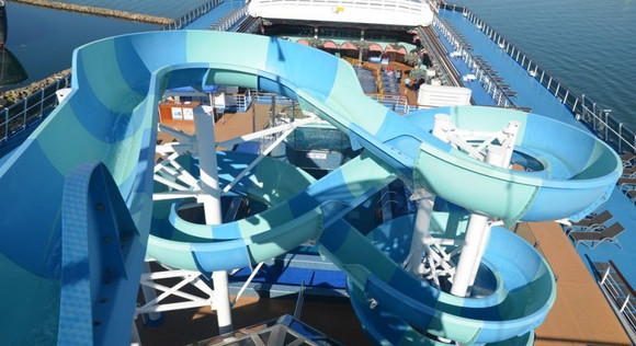 Carnival Twister Waterslide有三层甲板高和35米长,入口在甲板12层,出口在甲板10层,通入船的主池,不允许同时有多位客人和使用漂浮装置。