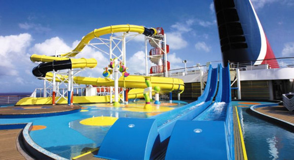 有四层楼高的水滑梯、喷泉、飞溅池等设施,是邮轮必去场所之一。13岁以下儿童需要父母允许才可游玩水滑梯。