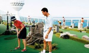 海上迷你高尔夫球场,颠覆您对传统邮轮的想象,让您拥有非同一般的旅行体验!伴着阳光、海风,迷你高尔夫球场让您在大海上享受9洞推杆的愉悦瞬间,不论大人、小孩都可以玩得自在、惬意、享受充满活力的一天。 这里不定期举行儿童和成人的高尔夫球比赛。