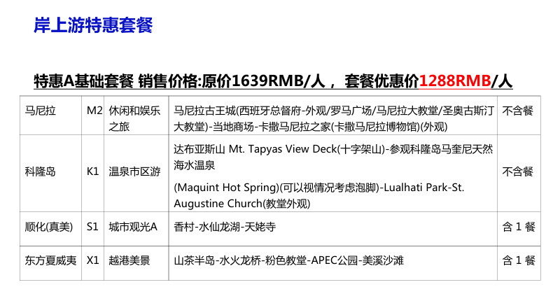 3、每个国家的港口岸上旅游产品;