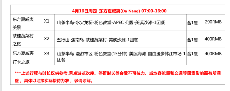 | 温馨提示 | 邮轮规定,由于邮轮上没有装备帮助孕妇或分娩人士的设施,故将不接受在航程开始时或航程进行中,会进入或已进入怀孕第24周的孕妇游客的预订申请。未超过24周的孕妇报名此行程,请提供医生开具的允许登船的证明。70周岁以上老人参团,必须有直系亲属陪同,并提供健康证明。18岁以下未成年人须至少有一名家长或一名成年旅客陪同全程,并且该家长或成年旅客需对未成年人的财产和行为负责。邮轮公司有权改变行程及缩短景点游览时间,所产生的损失我司及邮轮公司概不负责!我司保留根据具体情况更改行程的权利,行程仅参考,请以出发行程为准。如因个人原因,例如身体不适等影响行程,我司将不承担任何行程差别产生的费用,客人需自己承担。 |